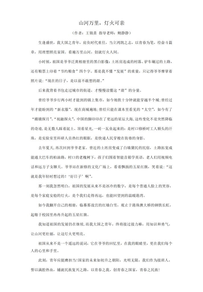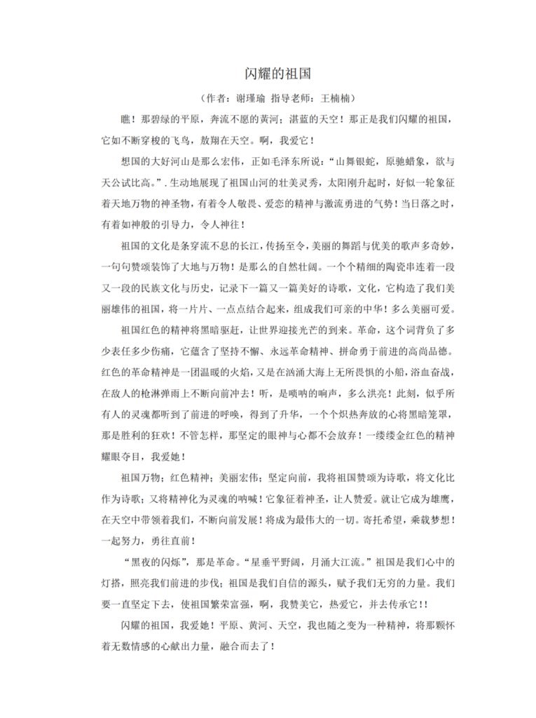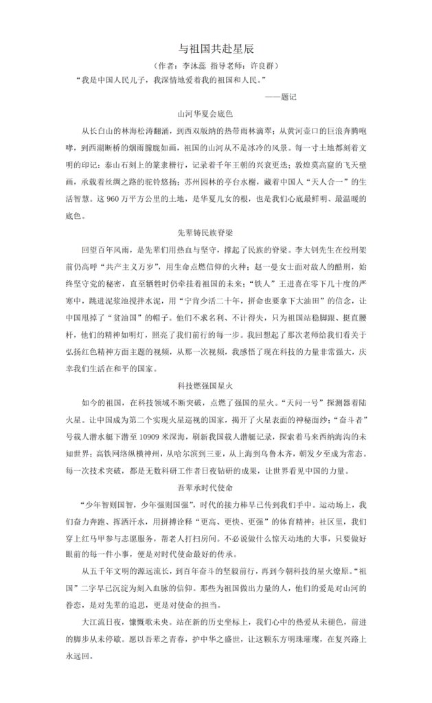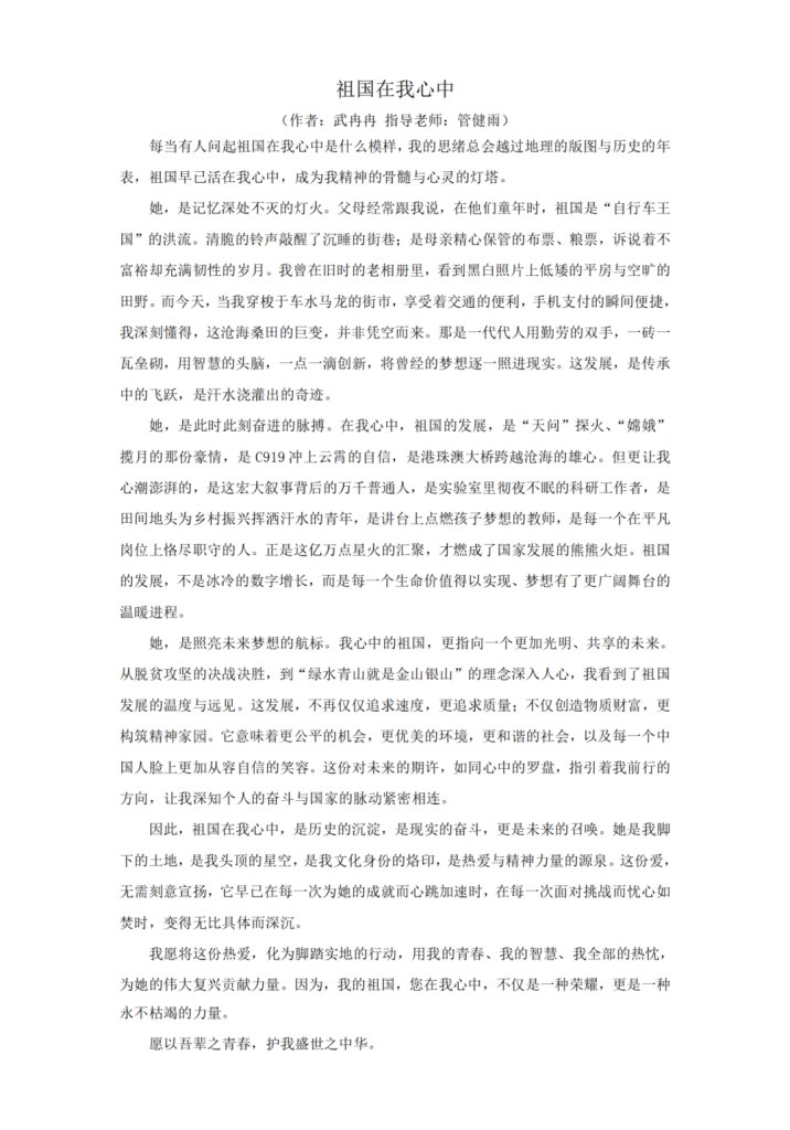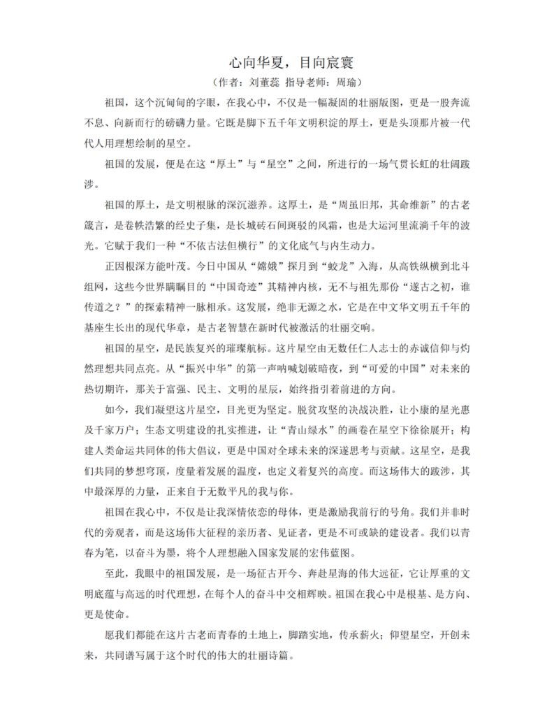 ~ 学生以“祖国在我心中”“我眼中的祖国发展”等为方向,积极撰写征文,用温柔细腻的笔触抒发对祖国的热爱与赞美。