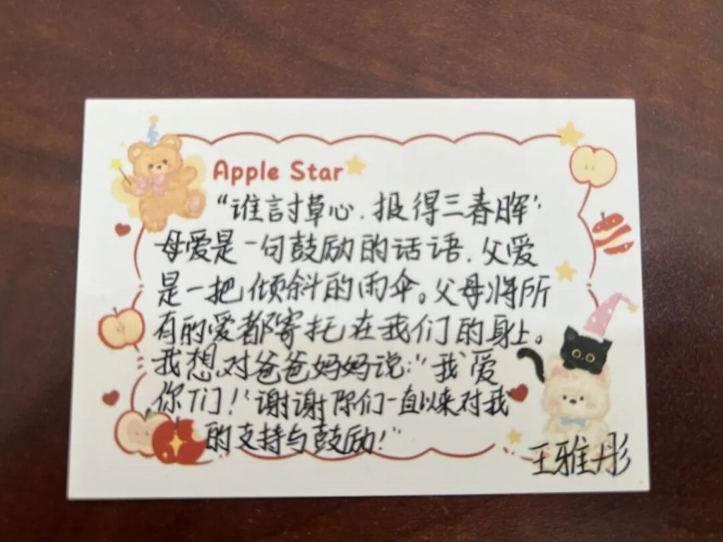 ~ 以情育人,静待花开。此次主题系列活动形式多样、内涵丰富,通过文化浸润心灵、情感引发共鸣、实践滋养成长,在校园内外悄然营造出温暖而深厚的情感氛围,这不仅践行了立德树人的初心,也为家校携手、共育未来播下了信任与理解的种子。