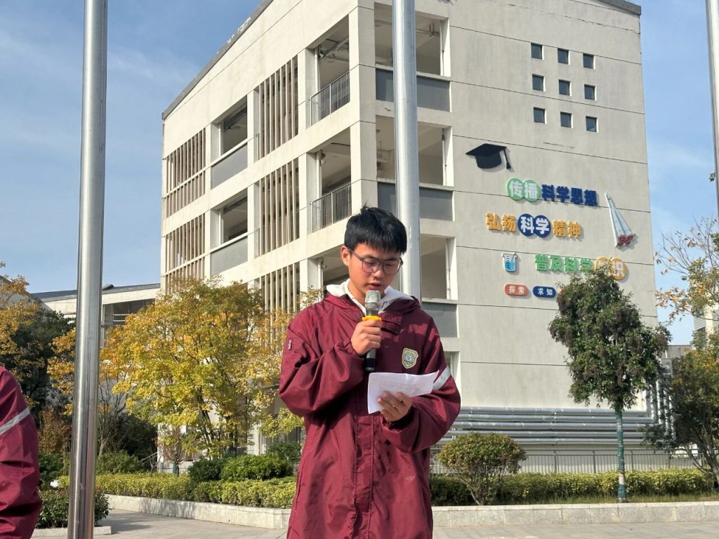 ~ 11月9日是第34个全国消防日,11月是全国消防宣传月。2025年11月3日上午,滁州凤阳英华中学全体师生在运动场上举行“全民消防、生命至上”主题升旗仪式,来自2307班的余子鹏同学,带来的国旗下演讲《消防安全,铭记于心,践于行动》,他倡议全体师生争做消防安全的“宣传员”和“守护者”,以实际行动筑牢校园安全屏障,用责任与担当守护自己和他人的生命安全。