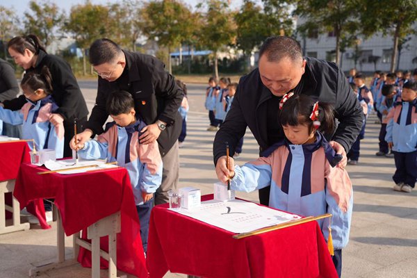 ~ 活动伊始,伴随着悠悠古乐,一年级新生在班主任的带领下,有序通过启智门进入会场,升国旗、行拜师礼、还戒尺、正衣冠,学校领导、老师为孩子们点朱砂,寓意开启智慧,孩子们“击鼓鸣志”,表达自己的志向,教师与孩子一同写出简单而意义深远的“人”字。副校长杨坤致辞,教导孩子们要做一个正直、高尚、有修养、有文化的人。活动最后是全体孩子们的《弟子规》手势操表演,旨在让孩子们亲身体验传统开蒙仪式,赋予孩子们求学求知的神圣使命感,在活动过程中接受勤学苦读、尊师孝亲、崇德立志文化的洗礼。(供稿:方辉 审核:王爱侠 审签:张中保)