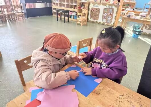 ~ 活动伊始,两校的孩子们在老师的引导下,手拉手结对进入教室。根据孩子们的能力特点和兴趣,大家分组参与了建构、手工等趣味活动,在合作搭建与创意手工的过程中,孩子们相互协助、彼此学习,欢声笑语充满了课堂。