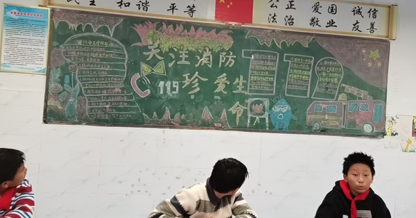 ~ 此外,学校还充分利用校园宣传阵地扩大教育覆盖面。各班级精心制作了消防安全主题黑板报,同学们以画笔勾勒消防标识、用文字普及消防知识,一幅幅内容丰富、设计精美的黑板报成为校园里一道独特的”安全风景线”;校园电子屏循环滚动播放消防安全标语内容,让师生在进出校园、课间活动时都能随时学习消防知识,潜移默化中强化安全意识。