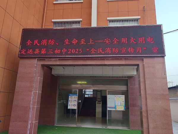 ~ 为切实增强全校师生的消防安全意识和应急避险能力,紧扣2025年全国消防宣传月“全民消防、生命至上——安全用火用电”主题,定远县第三初中于11月上旬在全校范围内开展了一系列的消防安全主题教育活动,以“知识宣讲+实操演练”形式,为师生筑牢校园消防安全“防火墙”。