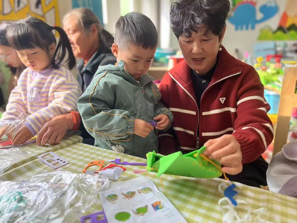~ 在老师的指导下,家长与孩子围坐一桌,手持彩纸、胶水、剪刀等材料,默契配合完成创意作品。