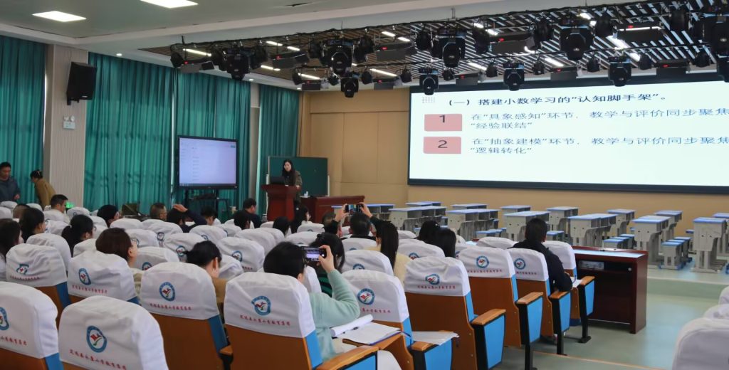 ~ 获奖优质课展评环节开始前,名师工作室成员陈莹老师带来了《深化”教学评一致性”实践,构建数学本质课堂》专题讲座,内容既有理论高度,又有实操方法,让每位参会教师对“教-学-评”一致性的内涵、核心素养的课堂落实有了更清晰的认知,为后续教学创新提供了有力支撑。