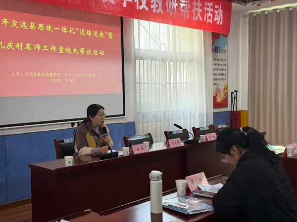 ~ 为深入践行立德树人根本任务,助推小学道德与法治课程提质增效,11月19日上午,定远县教体局教研室在花园湖小学隆重举办思政一体化“送培送教”暨孔庆利名师工作室皖北帮扶活动。来自城内片小学、七里塘学校等多所学校的小学道德与法治教师齐聚一堂,共赴这场思政教学的“成长盛宴”,携手探索育人新路径。