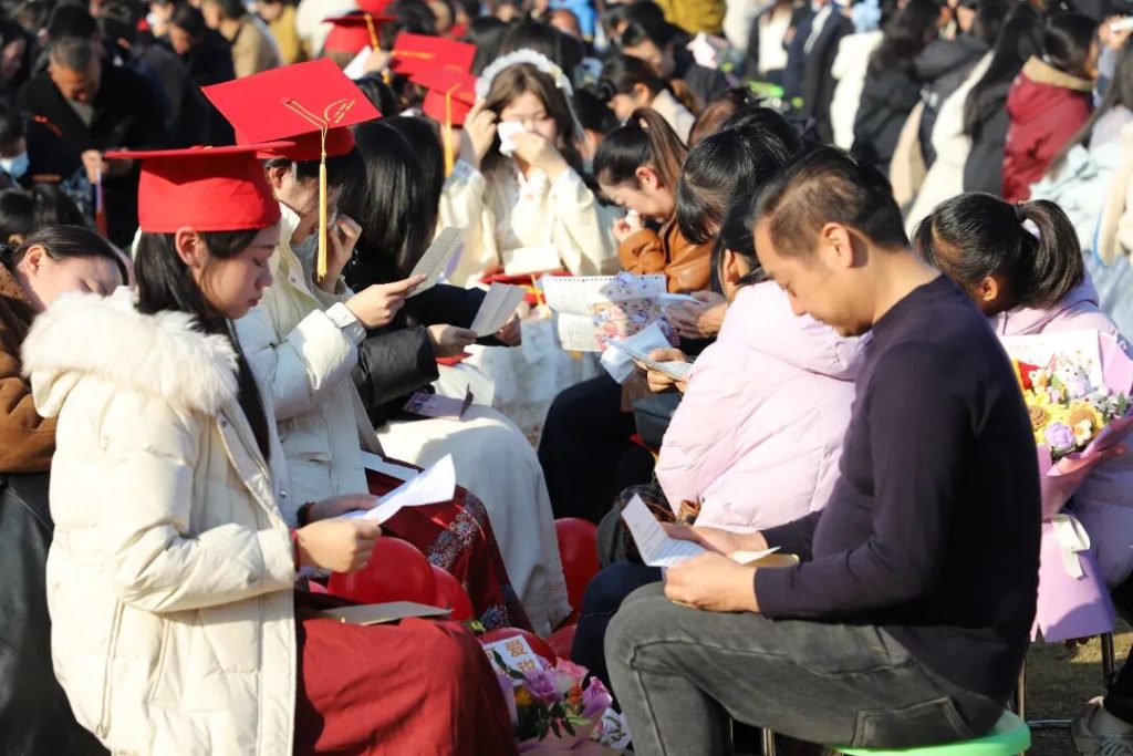 ~ 最动人的环节莫过于行冠礼及笄礼与互赠家书。全体家长亲手为自己的孩子戴上成人帽,动作轻柔却饱含深意,这顶小小的帽子,承载着父母对孩子的祝福与期盼,也标志着少年们正式迈入成年的行列。