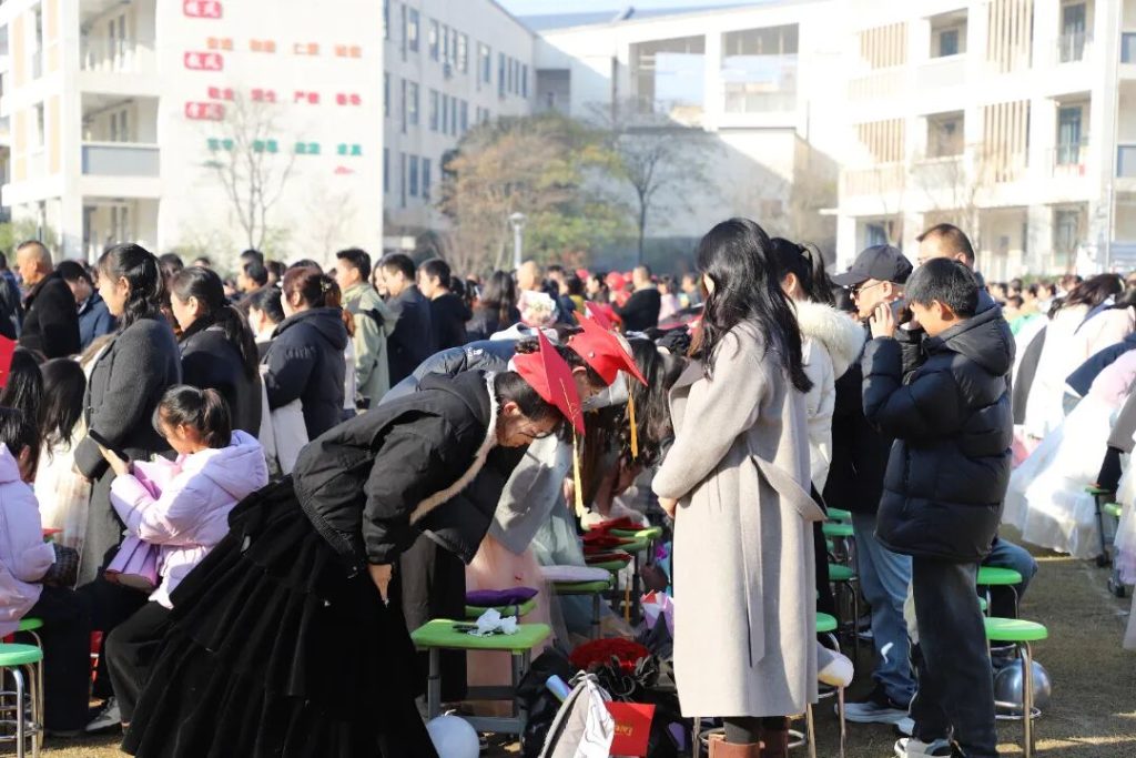 在主持人的引导下,全体学生向父母和老师行谢恩礼,深深的鞠躬承载着少年们最真挚的感恩之情。