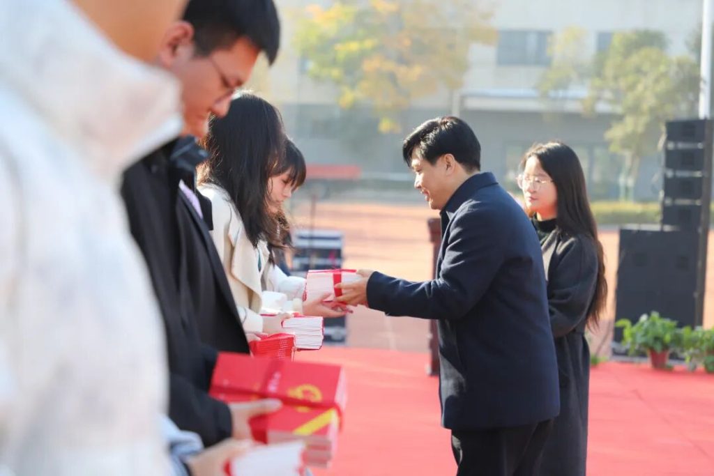 ~ 英华中学总校长张景为全体学生颁发《中华人民共和国宪法》,红色的宪法文本象征着法律的庄严与神圣,也提醒着同学们,成年后将享有宪法赋予的权利,更要履行宪法规定的义务,做一名知法、懂法、守法的合格公民。接过宪法的那一刻,同学们的眼神更加坚定,责任感油然而生。