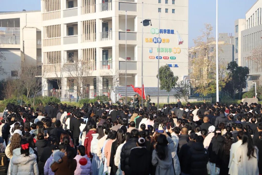 ~ 仪式在雄壮的国歌声中拉开帷幕。全体师生及家长肃穆而立,激昂的国歌声如烈焰,点燃心中的爱国赤诚,也为这场青春盛典注入深沉的家国情怀。