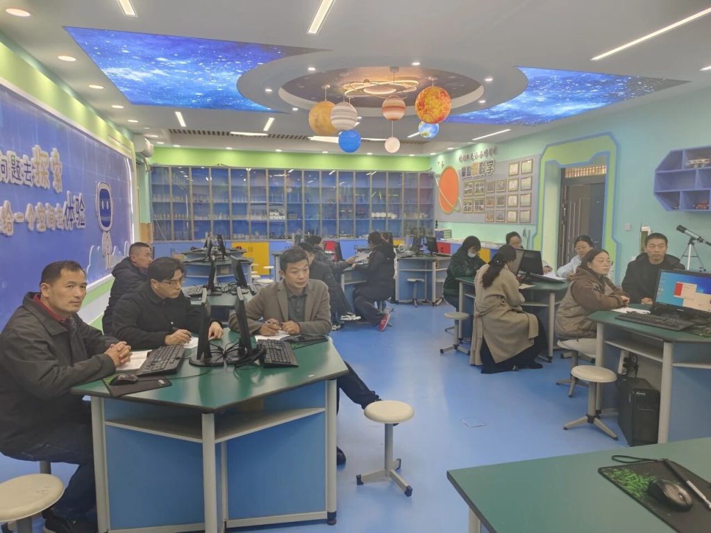 ~ 11 月 24 日下午,芜湖市解放西路教育集团定远校区(定远县职工子弟小学)科学实验室内气氛热烈,学校虚拟实验项目组成员及全体科学学科教师齐聚一堂,参加由中央电化教育馆安徽服务中心张健主讲的央馆虚拟实验专题线上培训,旨在深化教育数字化应用,提升科学实验教学质量。