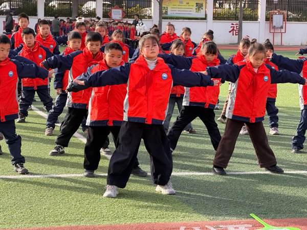 ~ 赛前各班在班主任和体育老师的指导下,利用体育课及课余时间刻苦练习,同学们一招一式过关,努力纠正错误动作,形成了良好的体育氛围。