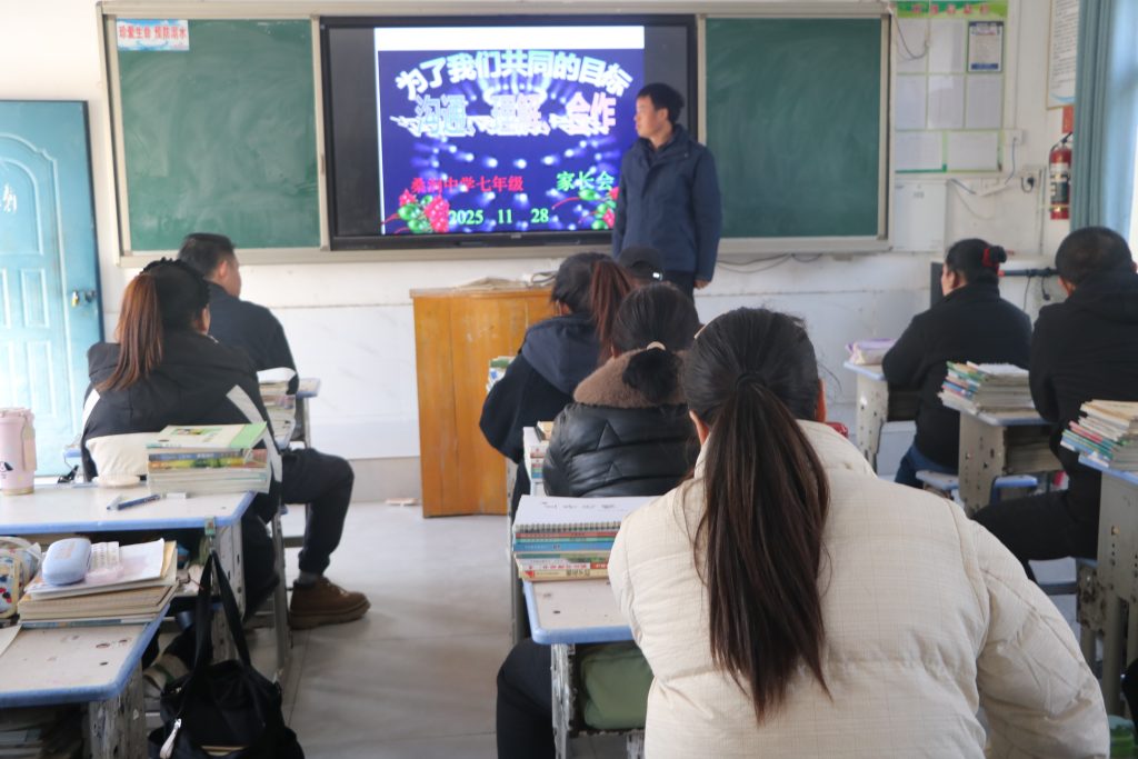~ 11月28日,定远县桑涧初中召开以“家校共育促成长”为主题家长会,搭建家校共育平台,合力共促学生成长。家长会分班级召开,全体家长和学生参加会议。