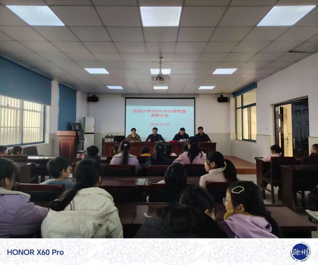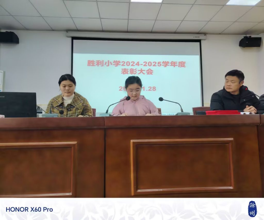 ~ 2025年11月28日下午,定远县胜利小学在四楼报告厅隆重召开2024-2025学年度教育教学工作表彰大会。会议由该校教务主任王仁兵主持,全体师生参加会议。