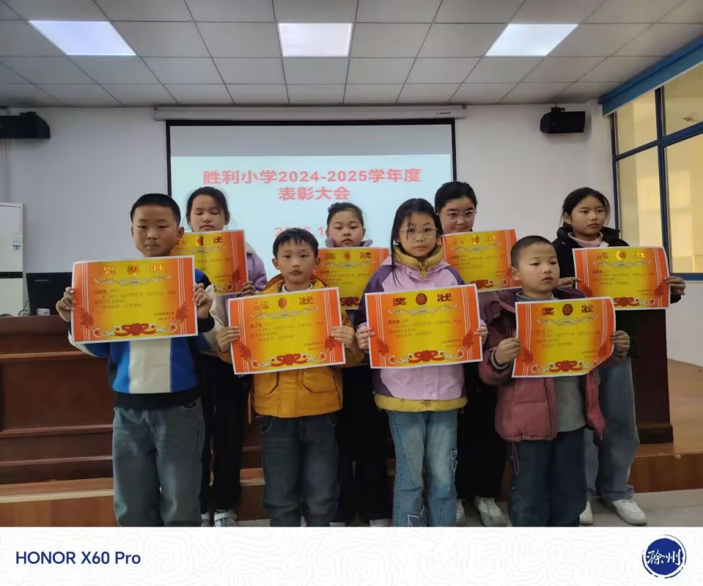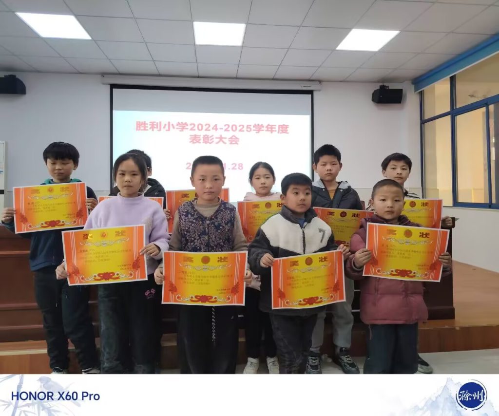 ~ 会上,该校党支部副书记李朝对2024-2025学年度教育教学工作作了全面总结,对学校取得的成绩作了充分的肯定,对获得佳绩的老师和同学表达了祝贺和感谢,并提出了殷切期望,希望全体师生继续努力拼搏,不忘初心,牢记使命,以满腔的热情努力工作,勤奋学习,再创胜利学校新的辉煌。教务主任王仁兵、少先大队辅导员李瑞分别宣布了获得表彰的师生名单。郝艳丽老师代表优秀教师,六年级陈毅楚同学代表获得表彰的优秀学生分别作了发言。大会最后,校领导为获奖师生颁发了奖状和奖品。