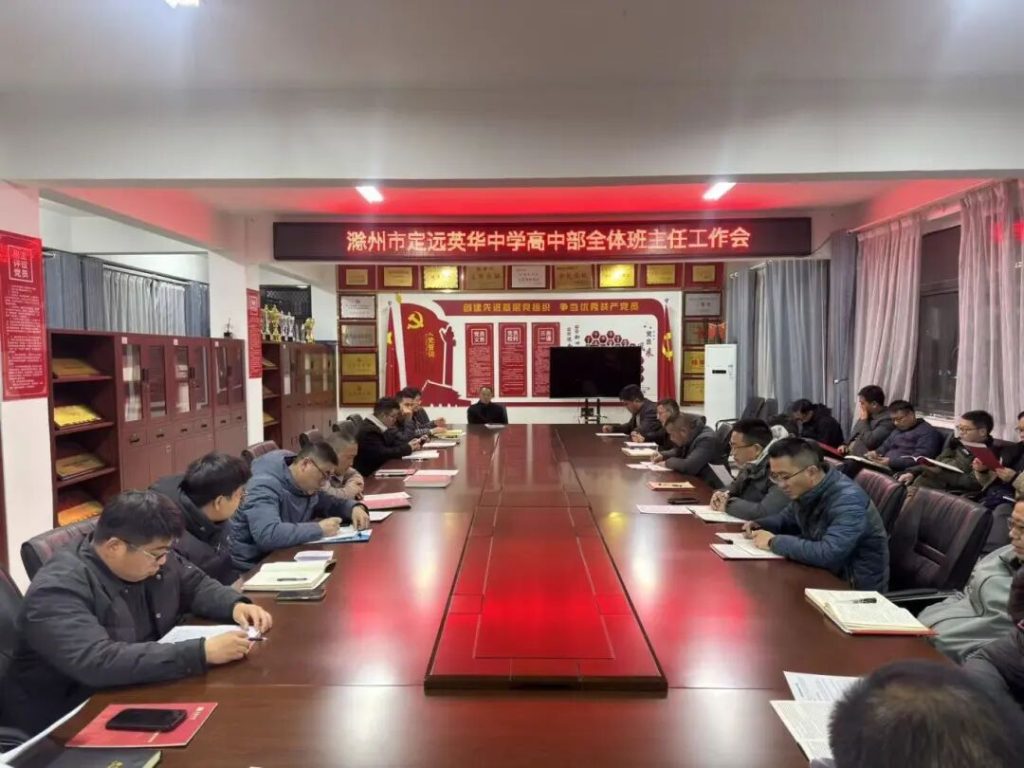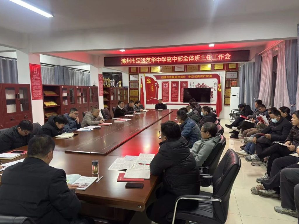~ 为进一步强化班级管理,凝聚教育合力,2025年11月27日晚七点,滁州市定远英华中学高中部召开全体班主任会议。高中部校长周雪松和德育副校长李昱霖参加了会议。