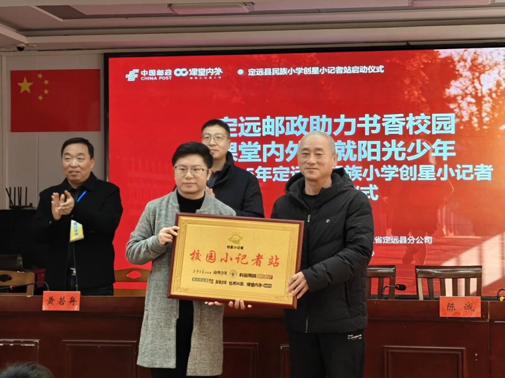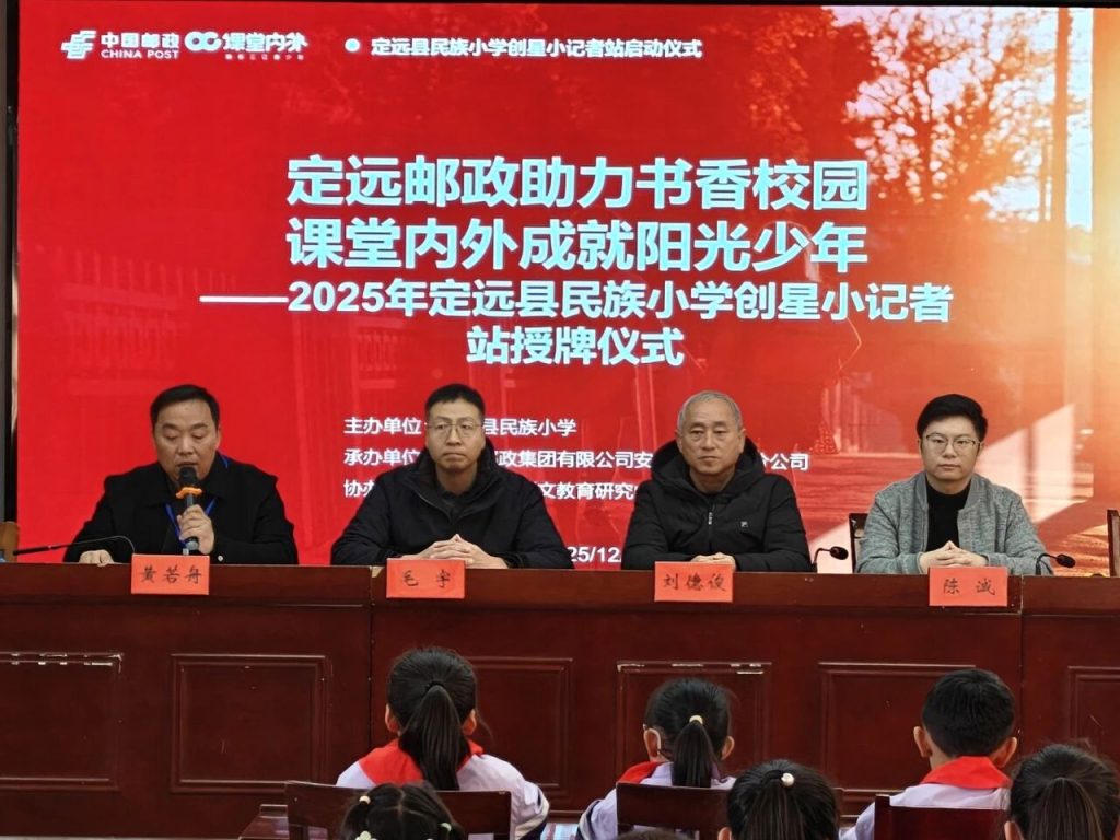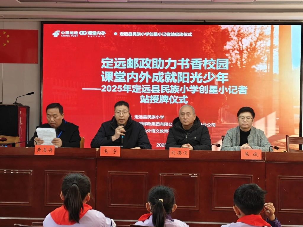 ~ 为激发学生新闻采写与文学创作热情,提升综合素养,12月1日,定远县民族小学与《课堂内外》杂志社共建的“创星小记者站”正式启动并举行授牌仪式。民族小学校长刘德俊、副校长黄若舟、全体语文老师,《课堂内外》语文教育研究中心执行主任陈诚,定远县邮政分公司副总经理毛宇、邮务部经理陆培峰等参加活动。