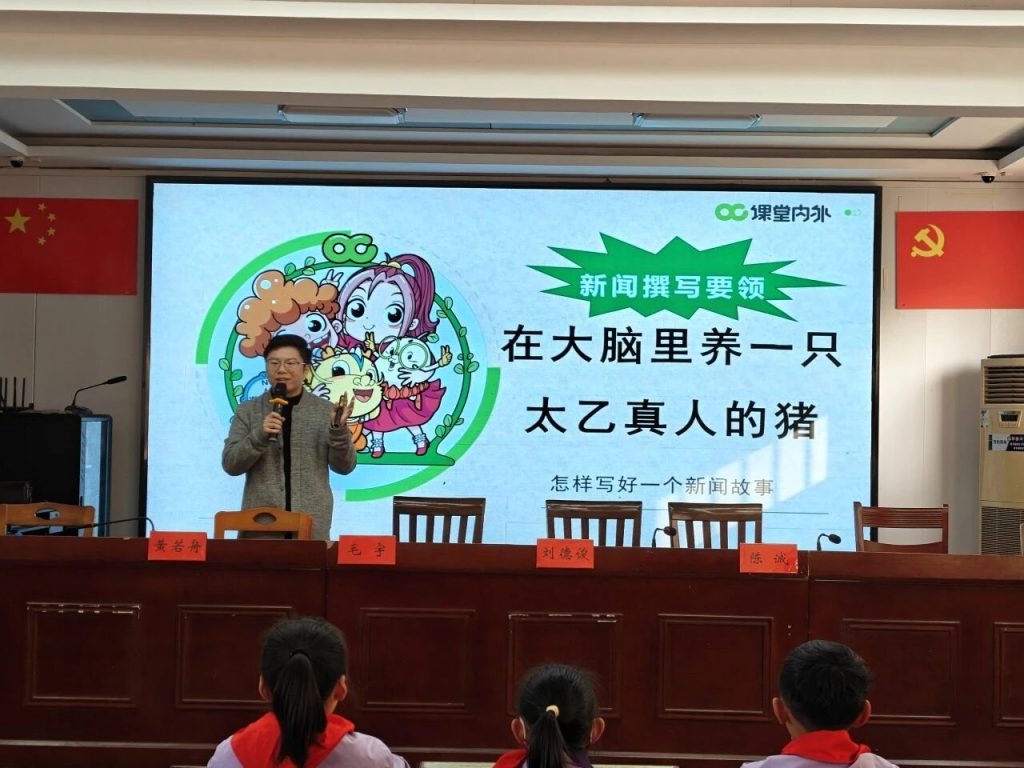 ~ 活动伊始,大队辅导员高迎娣介绍了到场嘉宾并宣布活动开始。副校长黄若舟热情致辞,他对小记者站的成立寄予厚望,着重强调此次合作是学校优质教育资源的重要拓展。他要求全体语文教师以小记者站为抓手,深耕育人初心。同时勉励同学们珍惜平台,以慧眼洞察校园脉动,以笔力书写少年心声。