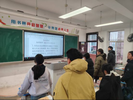~ 为深入学习宣传宪法知识,增强全体师生的宪法意识和法治观念,营造“学法、懂法、守法、用法”的校园氛围,12月4日,正值国家宪法日,定远县朱湾初中组织全体师生开展宪法晨读主题活动,以庄重的仪式感传递宪法力量。