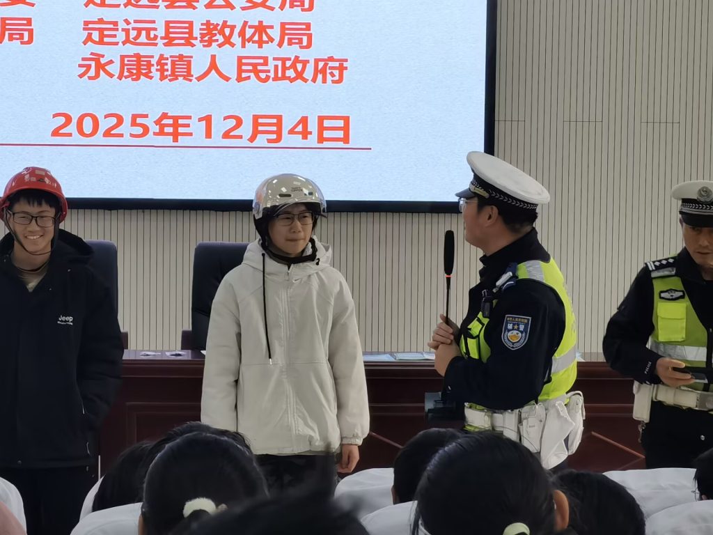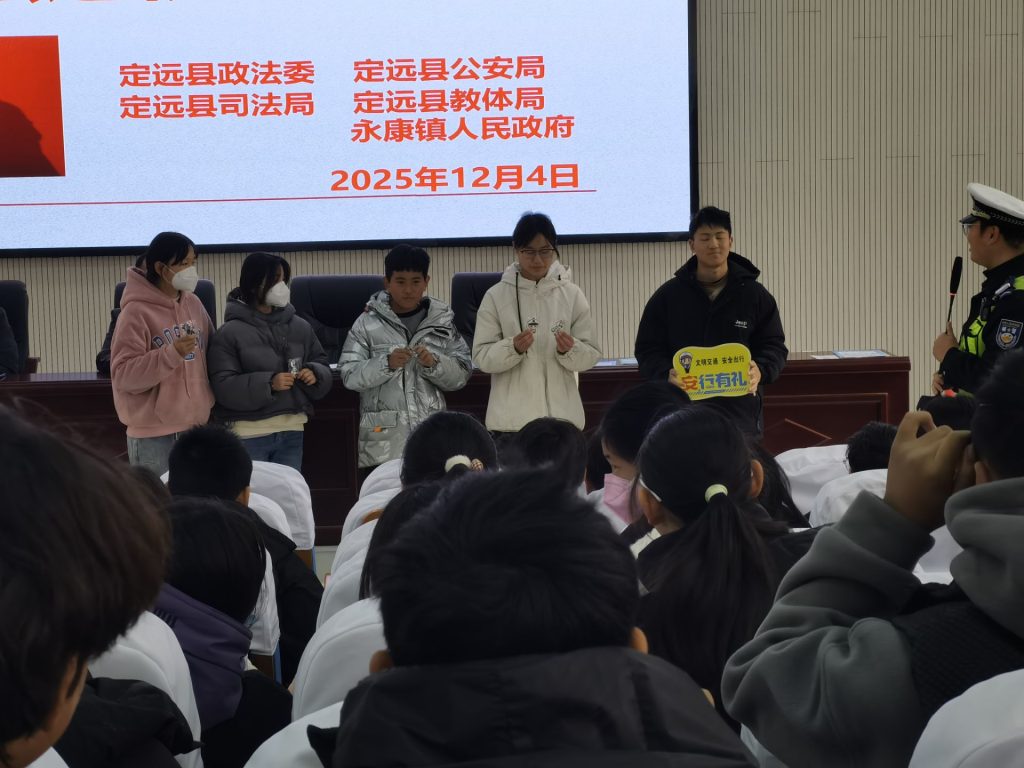 12月4日上午,定远县政法委、公安局、司法局等单位联合走进永康中学,以“文明出行守规则,安全相伴助成长”为主题,为全校师生带来了一场生动实用的交通安全宣传活动,让安全理念深入每一位学生心中。