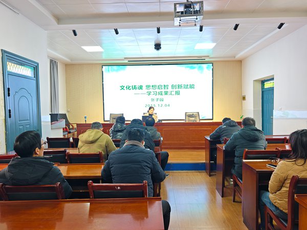 12月4日,定远县藕塘小学张子园老师以“文化铸魂 思想启智 创新赋能”为主题,向全体教师分享了近期在外培训的学习成果与教学思考。