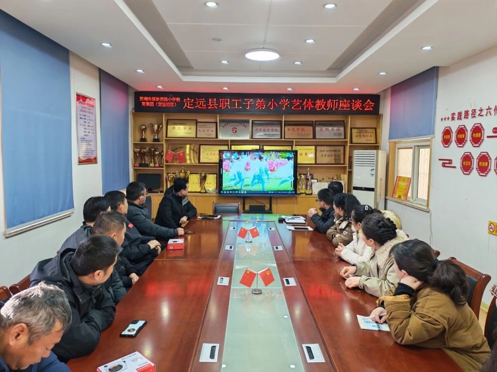 为深入贯彻“五育并举”教育方针,深化艺体教育教学改革,全面提升学校艺体教育质量,12月4日,芜湖市解放西路小学教育集团定远校区(职工子弟小学)召开艺体教师座谈会。会议由教导主任李邦铸同志主持,全体艺体教师参会,聚焦艺体教育发展核心议题,明确工作方向,凝聚育人共识。
