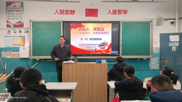 ~ 2025年12月1日至7日,是全国第12个宪法宣传周,近日,定远中学教育集团炉桥中学紧扣“学习宣传贯彻习近平法治思想,推动宪法深入人心”的核心主题,精心策划了一系列法治教育活动,让宪法精神走出课本、融入校园,在青少年心中播撒下尊法、学法、守法、用法的种子。