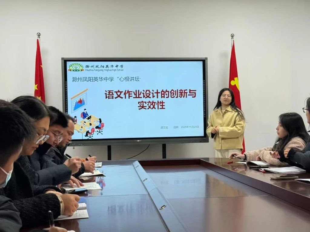 ~ 为提升教师专业素养、夯实课堂教学质量,充分发挥教研工作的引领示范作用,近日,滁州凤阳英华中学初中部开展了“心根讲坛”语数英三大学科主题教研活动,本次活动通过系列教研实践与深度交流,助力教师在教学实践中打磨技艺、在思维碰撞中凝聚共识,为推动学校教育教学高质量发展注入新动能。