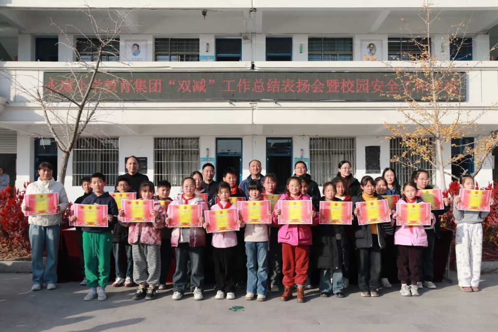 ~ 为表彰优秀,树立榜样,营造积极向上的学习氛围,同时全面增强学生的安全意识,筑牢校园安全防线,定远县永康小学教育集团于2025年12月8日下午,隆重召开了“双减”工作总结表扬会暨校园安全工作会议,全体师生参加了此次盛会,大会由大队辅导员李月主持。