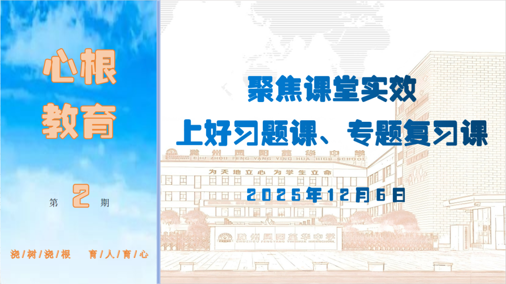 ~ 教学是学校发展的生命线,而课堂实效则是教学质量的核心标尺。为进一步破解教学中的重点难点问题,提升教师对习题讲评课、专题复习课的驾驭能力,近日,滁州凤阳英华中学以“聚焦课堂实效,上好习题讲评课、专题复习课” 为主题,成功举办第二期“心根教育教学教研”论坛。全体教师齐聚一堂,通过课型研讨、经验共享,促进教学理念的更新与教学方法的优化,为学校教学高质量发展注入新动能。