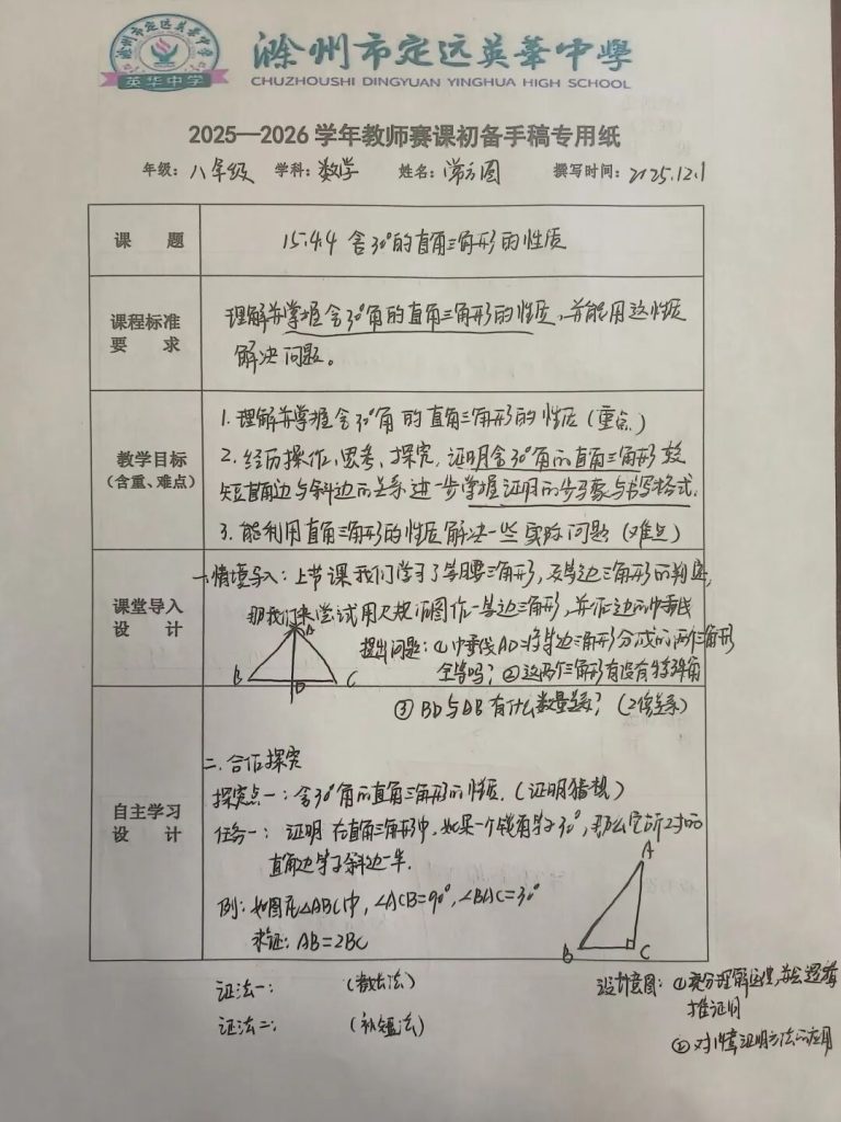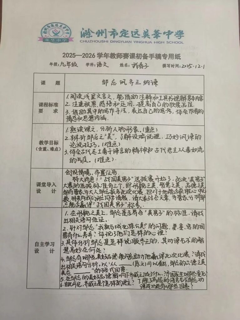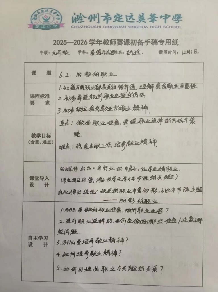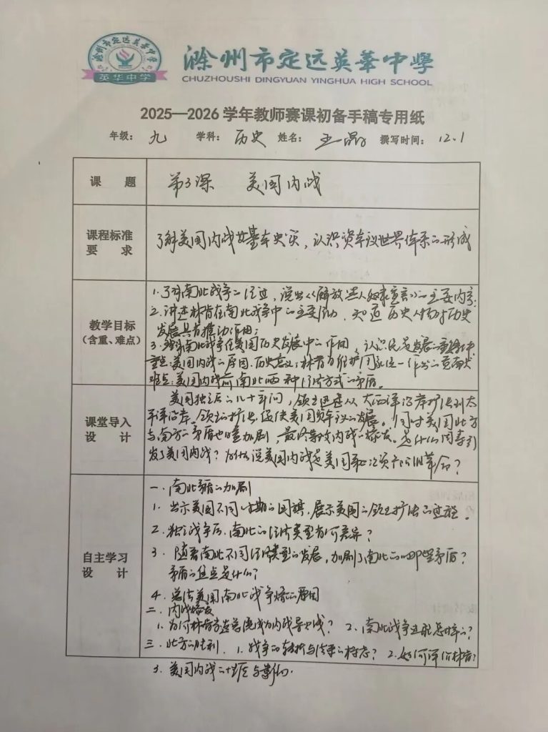 ~ 为进一步深化学校“学习化心智课堂”的教学改革,提升教师专业素养,检验和展示学校教育教学成果,滁州市定远英华中学初中学部于2025年12月上旬成功举办了“优质课大赛”的评选活动。