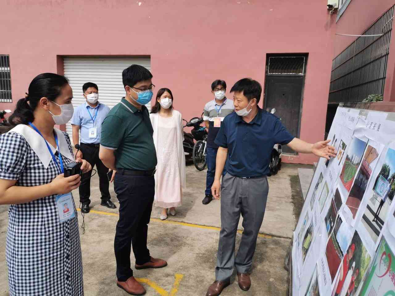 ~ 6月24日上午,滁州市文明校园验收组在市教体局副局长袁天峰的带领下,到定远县第二初中检查市级文明校园创建工作,县教体局组宣股副股长郑培进、该校校长杨传玉陪同检查。