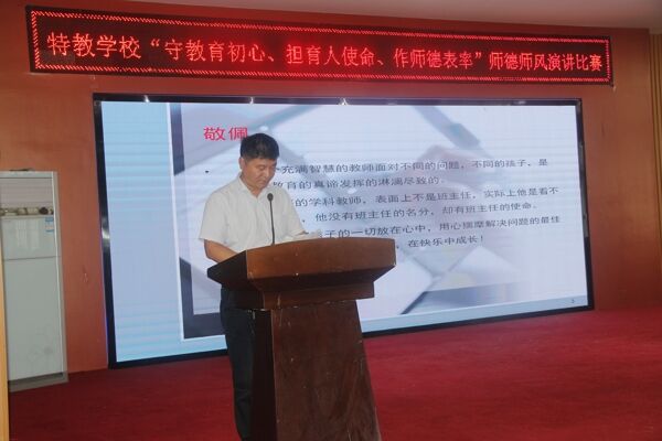 ~ 强化学校师德师风建设,提升教师职业道德水平,促进教师专业发展,营造教书育人、崇尚师德的良好氛围,7月2日上午,定远县特教学校开展了“守教育初心,担育人使命,作师德表率”主题演讲比赛。