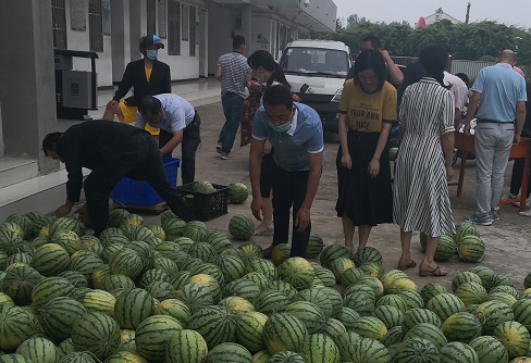 ~ 眼下正是西瓜上市销售的季节。眼看着西瓜丰收,房竹娴和杜恒礼喜上眉梢,却又愁在心里。没有好的销售渠道,加上连续多天的降雨,瓜田里有一万多斤已经成熟的西瓜亟待销售。就在这时,炉桥镇魏岗村第一书记兼扶贫工作队队长王秀平积极对接帮扶单位定远化工学校。校党委书记、校长周世东得知实际情况后,高度重视,要求学校工会向全体教职工发出“爱心认购”倡议。在校工会的积极组织下,全校近300名教职工踊跃参与,共认购贫困户一万多斤西瓜,合计金额7000多元,有效避免了西瓜滞销给贫困户带来的损失。