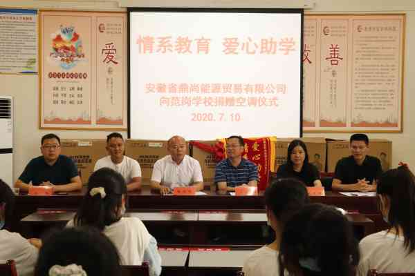 ~ 7月10日上午,安徽省鼎尚能源贸易有限公司情系范岗学校,积极捐资助学 ,共捐赠10台挂式空调,价值3万元,全部安装在学生宿舍 。定远县委教体工委书记、教体局局长王光明,范岗乡党委书记胡勃阳参加本次活动。捐赠仪式由该校校长陈恩源主持。