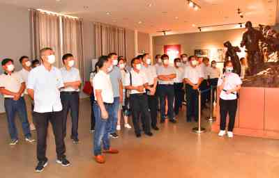 ~ 随后,党员们参观了安徽省国防教育基地、淮南大通万人坑教育馆,缅怀遇难同胞,寄托哀思。淮南大通万人坑教育馆主要展示日军侵占淮南后,强迫民工在极其恶劣的条件下从事挖煤等高强度劳动,并导致大量人员死亡。一幅幅惨不忍睹的画面,一段段凝聚民族血泪的文字,详实的资料和大量的实物,控诉了日军犯下的滔天罪行,让参观的党员深刻体会到日本侵略者触目惊心的掠夺和兽行,进一步激发了全体党员的爱国情怀,增强了历史荣辱观和民族使命感。