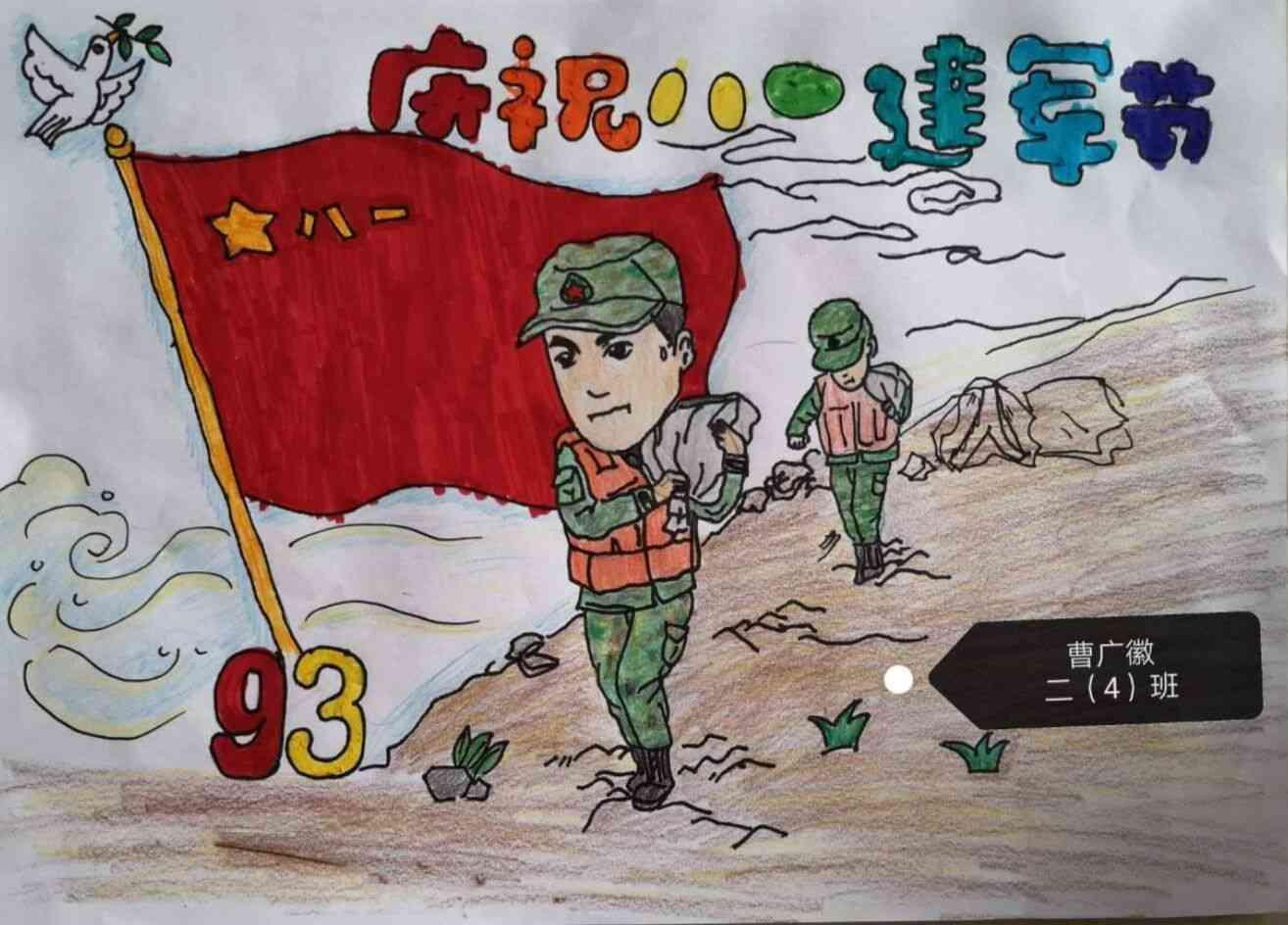 老师们通过班级群向学生们广泛宣传了国防教育、拥军思想,并开展了以“致敬解放军”为主题的绘画、手抄报以及《写给解放军叔叔的一封信》等活动。孩子们用作品表达自己的心声,继承先辈的优良传统,歌颂祖国的繁荣昌盛,表达了新时代好少年爱党、爱国、爱家的家国情怀。(汪秀芝 周靖)