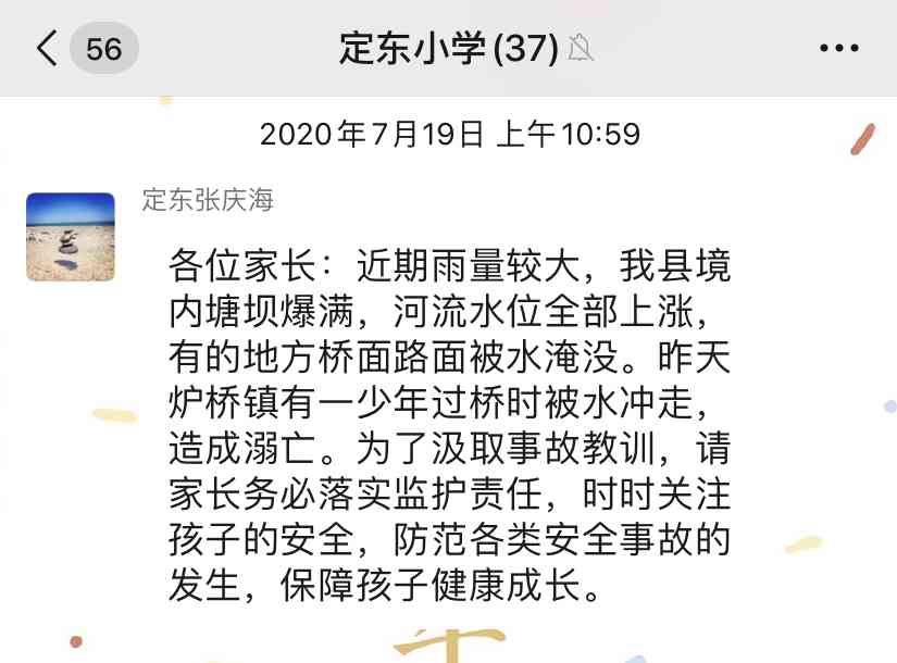 安全重于泰山,防溺水安全教育是定远县定东小学暑期工作的重中之重,一直常抓不懈。暑假前夕,张庆海校长召开全体教师预防溺水安全工作会议进行安全部署。安全办主任梁海明对防溺水工作进行教师包保制布置。通过微信群、主题班会、黑板报等形式向学生及家长宣传防溺水相关安全知识及预防溺水安全教育视频,让家长和孩子一起学习,打响家校共育安全保卫战。暑假期间,学校通过电话联系家长和在班级微信群时常发布防溺水安全警示、安全知识,呼吁家长务必增强安全意识和监护意识,切实承担起监护责任,力求做到学校、家庭齐抓共管,联防联动,杜绝溺水事故的发生。坚持做到暑期防溺水安全教育不“放假”,筑牢假期防溺水的“安全墙”。(徐林娜)