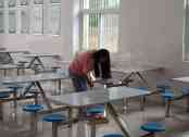 ~ 活动日还组织全体党员教师开展食堂卫生清扫工作。活动中,大家不怕脏、不怕累,把厨房储物柜、工作台、餐桌、餐具等反复擦洗干净,再用拖把反复拖地,对食堂卫生死角进行了清理。通过大家的辛苦劳动,食堂面貌焕然一新。