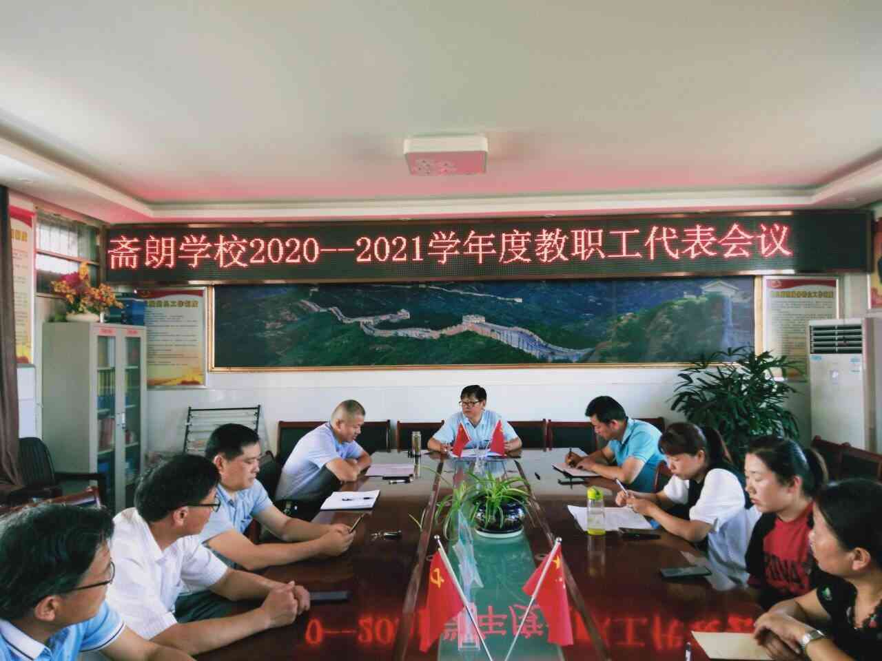 在新学期即将到来之际,定远县斋朗学校2020-2021学年度教代会于8月24日下午在校会议室召开。会议由校工会主席朱文付主持,在工会委员梅家材核实出席本次会议的代表人数后,会议正式开始。
