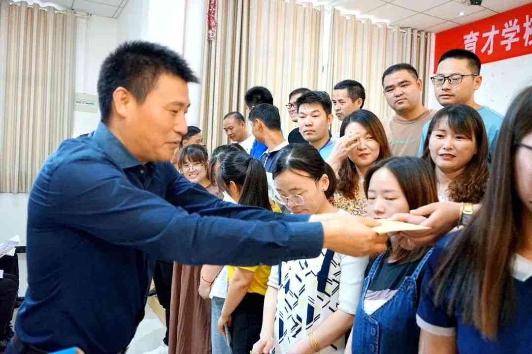 ~ 会上,倪有华校长宣读了新学期工作计划、教干任命通知,对新学期工作作出部署和安排,教师节表彰大会正式开始。董事长孔祥雷为2019——2020学年度优秀教职工颁奖并为九年级教师发放2020年中考奖金,用以表彰九年级领导班子、班主任、教师。会上,孔董要求全校教职工要以受表彰教师为榜样,以更加饱满的热情、更加进取的作为,立德树人,谱写育才学校新篇章。