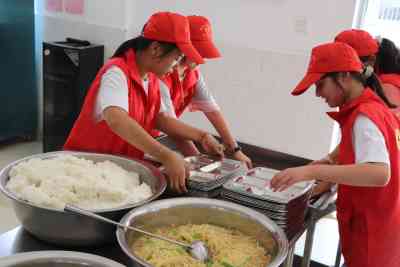 具体任务包括将饭菜盛进餐盘,送到指定位置。吃完饭后,负责擦桌子,打扫卫生,引导同学们将餐盘送到指定位置,并积极带头倡导“光盘行动”。