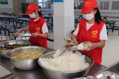 天河初中餐厅里最靓的“风景”——可爱的志愿服务队