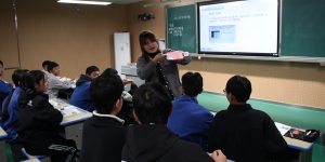 校团支部书记在给同学们讲解