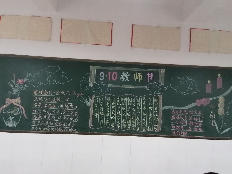 ~ 为了迎接第36个教师节的到来,营造良好的尊师重教的校园氛围,进一步加强学生的感恩教师,感恩社会的教育。9月10日,定远县第一初中团委组织七、八年级各班开展了以“庆祝教师节”为主题的黑板报评比活动。丰富的内容,精心的设计以及一句句暖心的话语,将同学们对老师的真心祝福与无限感激融汇在一起。(刘发奇)