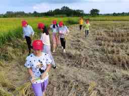 老师首先教会同学们如何识别饱满的稻粒。随后,同学们仔细地寻找着田间被落下的稻穗。同学们开心地举起稻穗高喊着:“我找到稻穗了,我又找到一穗。”一会儿功夫,每名学生都捡拾一大把稻穗。