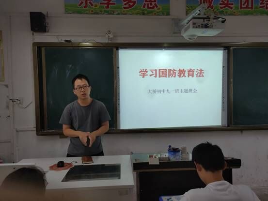 9月14日,学校召开教职工会议,安排部署集体学习《中华人民共和国国防教育法》。9月15日,大桥初中开展“学习国防教育法”主题班会活动。活动中,各班主任通过播放国防教育视频,引导学生深入了解国防双拥的相关知识,进一步提高国防观念和国家安全意识。学校还利用宣传橱窗、电子显示屏等设施开展国防教育宣传,此次宣传活动进一步营造了该校拥军优属、拥政爱民的浓厚氛围。(张杰)