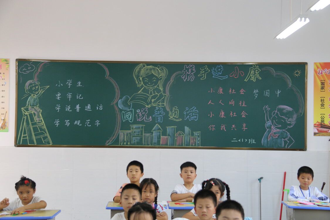~ 本年度推普周的主题是“说好普通话,携手进小康”。为响应推普周活动号召,积极深入宣传《国家通用语言文字法》,进一步提高全体师生的语言文字规范意识,促使每位学生爱说、敢说、会说普通话,定远县建设小学结合实际,精心策划,周密组织,积极发动,创新形式、扎实工作,紧紧围绕主题开展了丰富多彩、形式多样、各具特色的推普宣传系列活动。