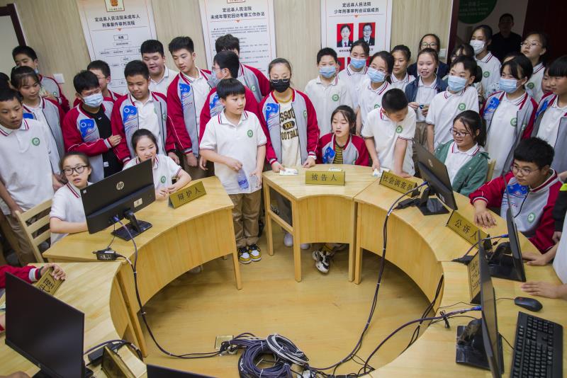活动中,同学们兴致高昂,排着整齐的队伍来到法院三楼观摩大厅,边观看边聆听宣讲员的讲解,不时的询问有关法律知识,对宪法、义务教育法、预防未成年犯罪等法律有了一定的了解,同学们还观看的了模拟审讯室、模拟法庭以及根据一个少年犯罪的真实案例改编的电视片。此次活动给同学们上了一堂生动的法治课,懂得要学法、用法,维护法律的尊严,运用法律维护自身的合法权益。(蒋华新)