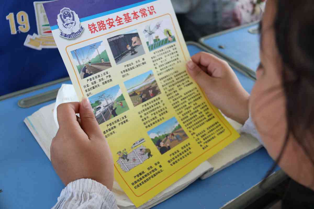 铁路公安干警向学生散发了《“共建平安铁路”公开信》、“铁路安全基本常识”宣传手册等资料。向学生讲解了铁路护路安全常识,告诫孩子们严禁攀爬钻越防护栅栏;严禁在铁路上放置或投掷物品、击打列车,不接近铁路高压线以防触电等;严禁破坏铁路设施等危害铁路安全的事项,要求全体教师增强法律意识,自觉遵守铁路运行安全规定,确保铁路运输安全畅通和人民群众的生命安全。